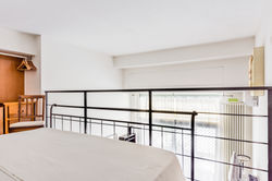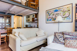 il loft è disposto su due livelli, al primo ospita cucina, soggiorno con terrazza, bagno; al secondo livello, la camera da letto.